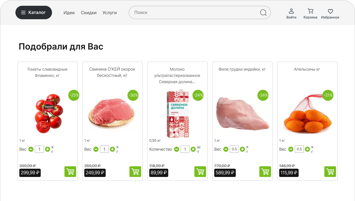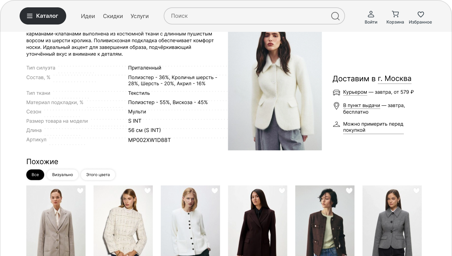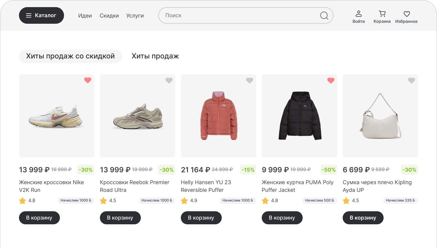 Учитывает просмотры, заказы, избранное, историю корзины и поведение похожего сегмента.